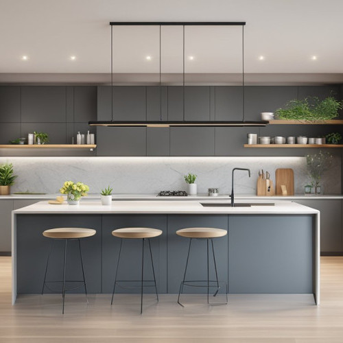 Sleek and minimalistic designs with hidden storage solutions are trending. Handleless cabinets and push-to-open mechanisms help create a clean, uninterrupted surface. Interior storage solutions like pull-out trays, hidden pantries, and built-in organizers optimize functionality while maintaining a clutter-free appearance.